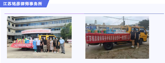 8月7日,江苏铭彦律师事务所王艳、周静等律师到淮安市妇幼保健院慰问一线抗疫人员,将律所采购的纯净水、桶装面、牛奶等物资捐赠给一线抗疫人员,表达了与一线抗疫人员携手同心、共抗疫情的坚定决心。
