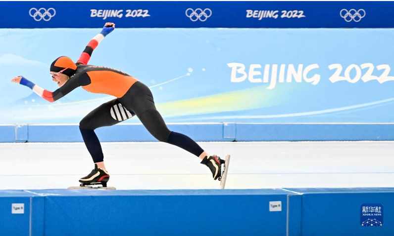 2月5日,冠军荷兰选手伊雷妮·斯豪滕在速度滑冰女子3000米决赛中。新华社记者 王菲 摄