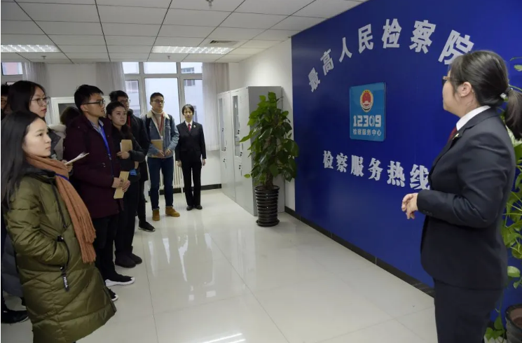 2018年12月4日,国家宪法日,最高人民检察院机关举行第26次检察开放日活动,这是参加开放日活动的代表在参观12309检察服务中心。新华社发