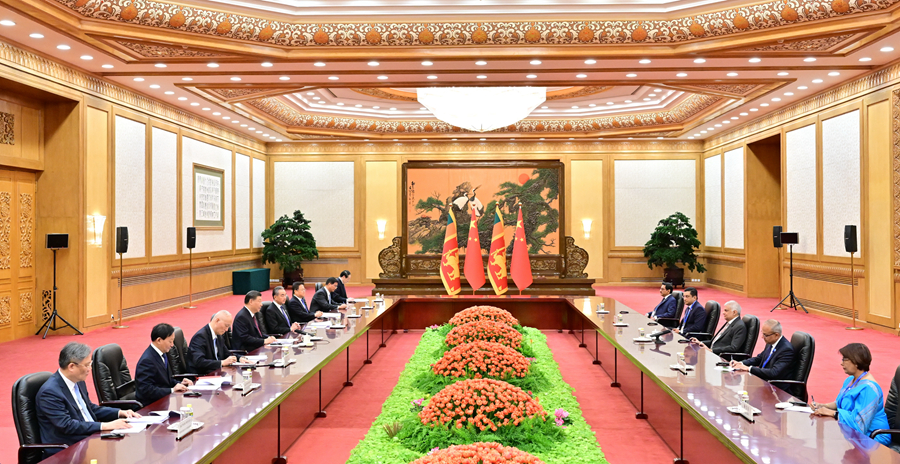习近平指出,中国和斯里兰卡人民长期友好、互学互鉴、守望相助、联合自强。斯里兰卡是最早欢迎并加入“一带一路”倡议的国家之一。中方高度重视中斯关系发展,愿同斯方巩固政治互信,高质量共建“一带一路”,推动中斯真诚互助、世代友好的战略合作伙伴关系不断取得新进展,更好造福两国人民。
