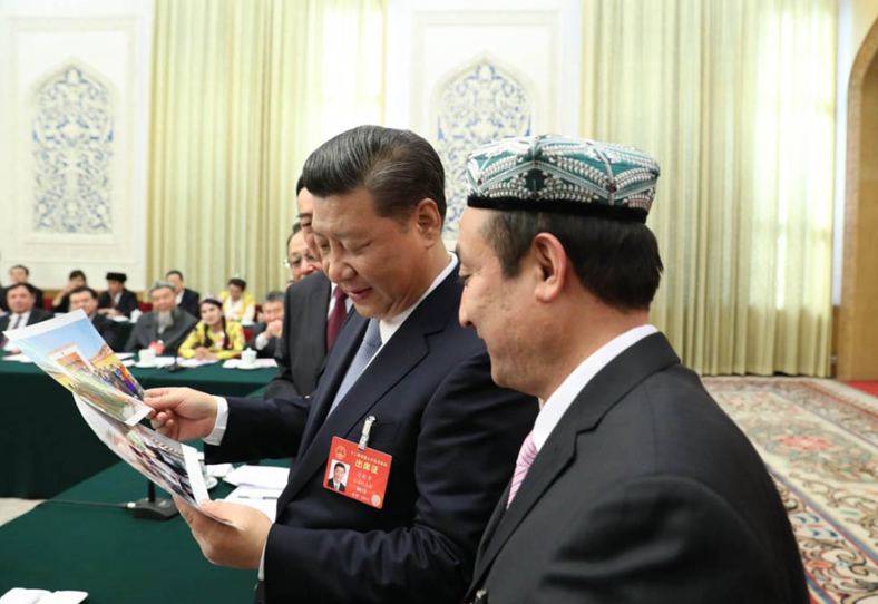 让买买提依布热依木惊喜的是,第二天傍晚,在全国两会少数民族代表委员茶话会上,又见到了总书记,还坐在总书记身旁。